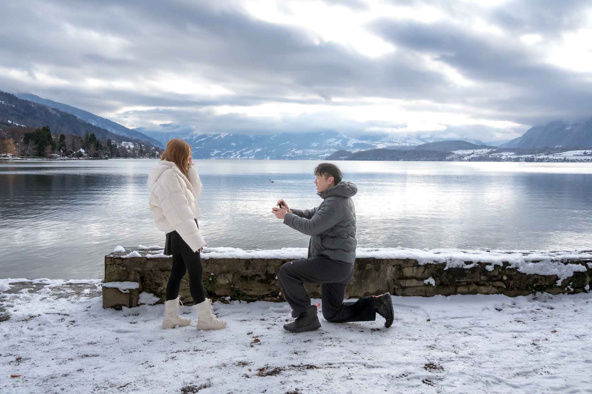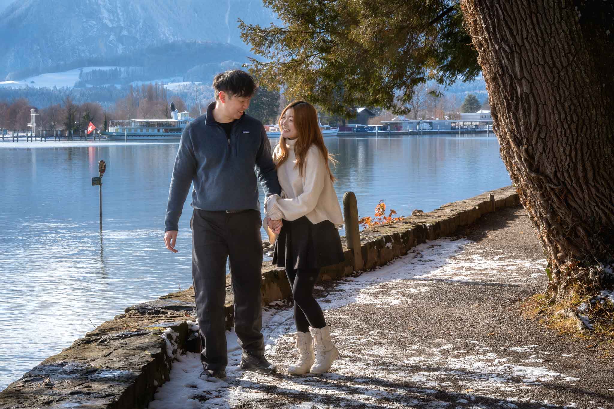 Jiahui and Reynold had gotten engaged just a few days earlier and wanted some special photos to announce their engagement. They were staying in Interlaken, so we all traveled together to Schloss Schadau for the shoot.
